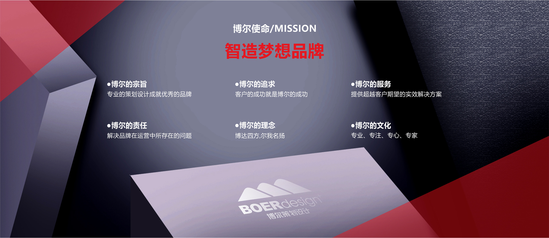 博尔策划设计以顾客为中心,为客户创造精准、可行、极具商业价值的品牌形象。数年来,博尔策划设计坚持高水准的服务标准,凭借对市场趋势敏锐的洞察,和对消费者、企业形态深刻的理解,服务了客户数百家,跨越众多行业。一切为了销售,否则我们一无是处!